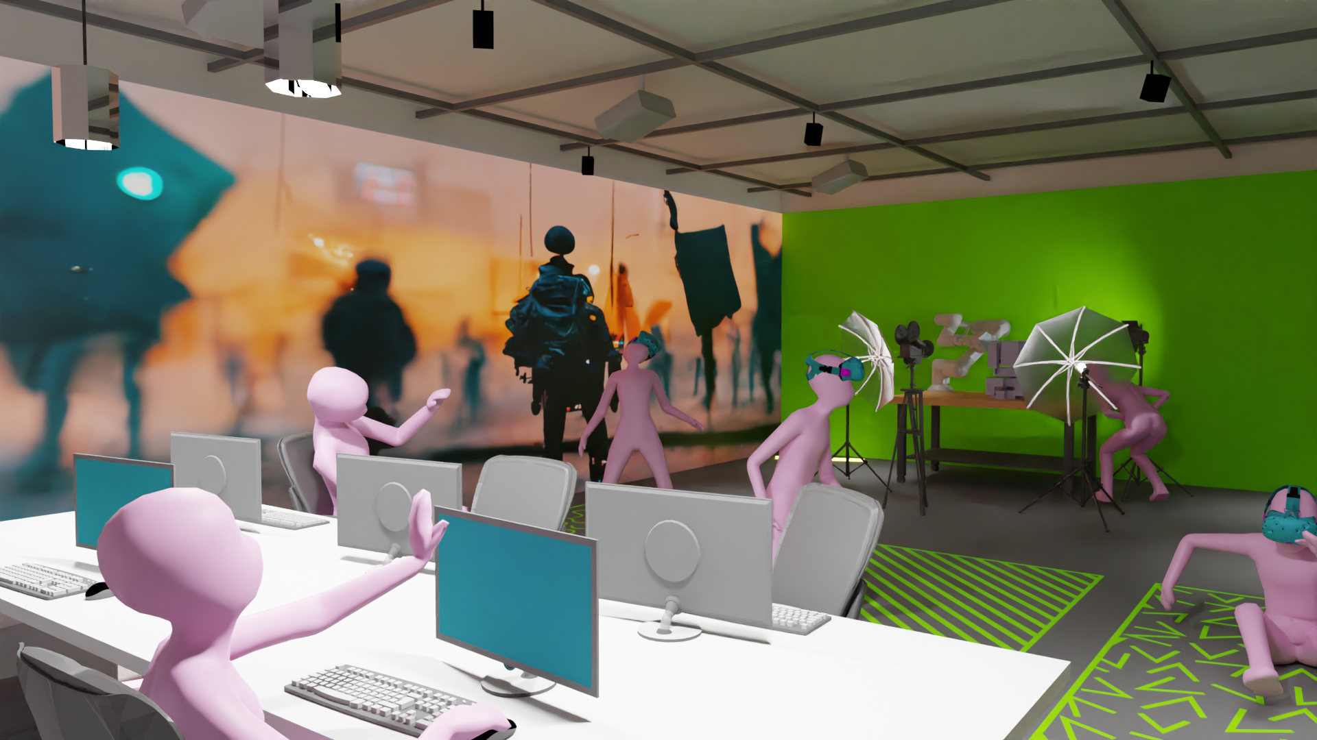 In the spirit of collaboration and negotiation, I'm constantly in dialogue with fellow faculty, exploring novel ways to utilize the space and resources. The TVLab's versatility sets it apart, accommodating exhibitions like Mexico City’s Centro 'Snap-To-Grid', various workshops as previously described, reviews such as with Adam Fure M.Arch 3G’s, and diverse studio work, including Urban Design with Mclain Clutter and Alina Nazmeeva. Since January 2023, I've collaborated with over 24 faculty across undergraduate and graduate courses, each partnership bringing its own unique contributions. This adaptability arises from numerous brainstorming sessions with both faculty and students. This collaboration brings its own set of challenges, like managing transitions between different work formats, instructing users on navigating the space, training all research assistants, and constantly learning new emerging technologies. Yet, embracing a 'workshop' mindset invites welcome surprises and unexpected outcomes. The lab itself has been both a tool influencing student projects and a canvas reshaped by their work. My ongoing collaboration is key; it's what allows the lab to continually transform from a basic tech space into an adaptive environment that meets the changing needs of its users.